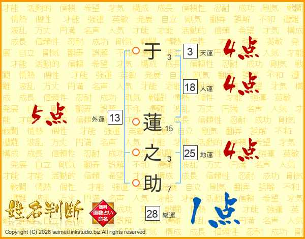 于蓮之助さんの地運は25画の4点!