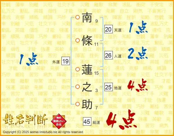 南(9画)條(11画) 蓮(15画)之(3画)助(7画)
