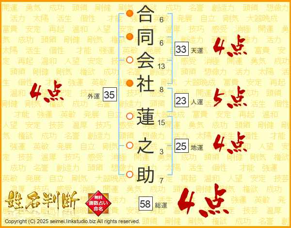 合(6画)同(6画)会(13画)社(8画) 蓮(15画)之(3画)助(7画)