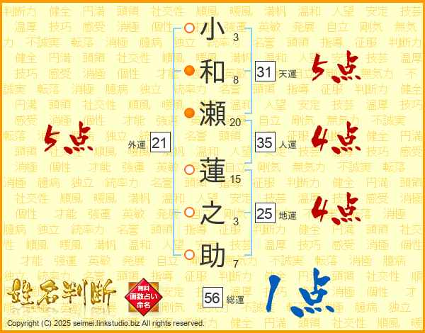 小和瀬蓮之助さんの外運は21画の5点!