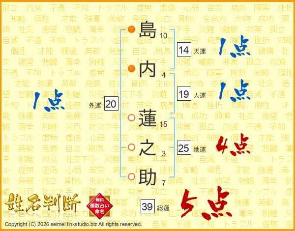 島(10画)内(4画) 蓮(15画)之(3画)助(7画)