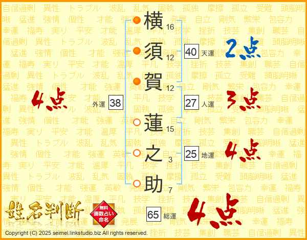 横須賀蓮之助さんの総運は65画の4点!