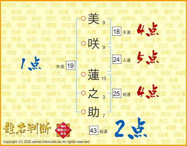 美(9画)咲(9画) 蓮(15画)之(3画)助(7画)