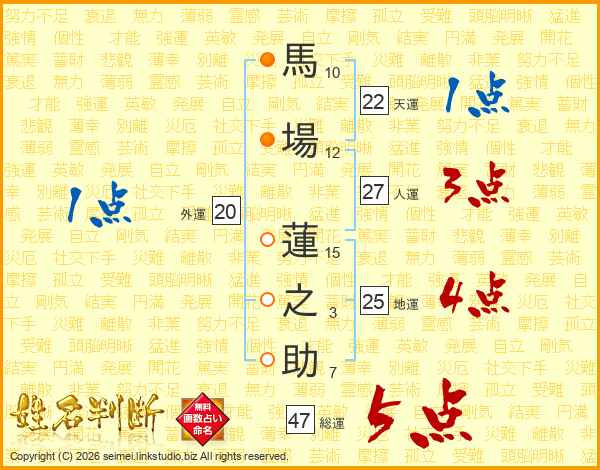 馬場蓮之助さんの総運は47画の5点!