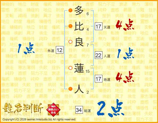 多比良蓮人さんの総運は34画の2点!