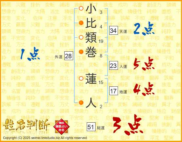 小(3画)比(4画)類(19画)巻(8画) 蓮(15画)人(2画)