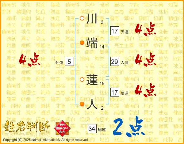 川端蓮人さんの総運は34画の2点!