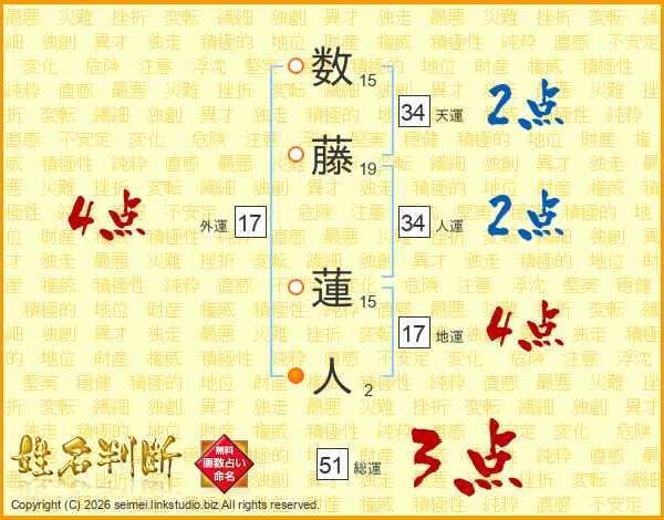 数藤蓮人さんの総運は51画の3点!