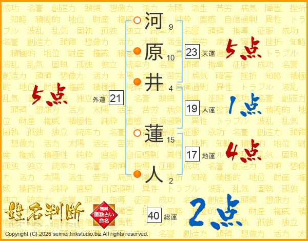 河原井蓮人さんの外運は21画の5点!