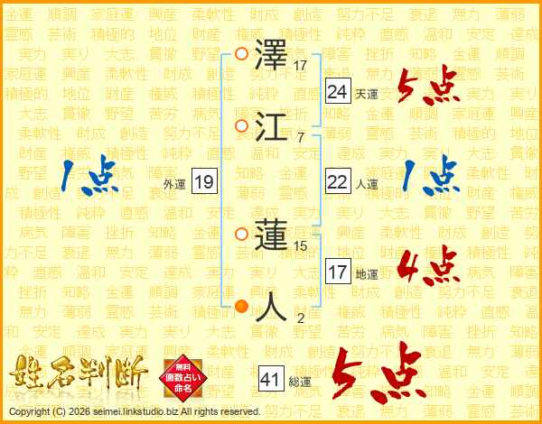 澤江蓮人さんの総運は41画の5点!