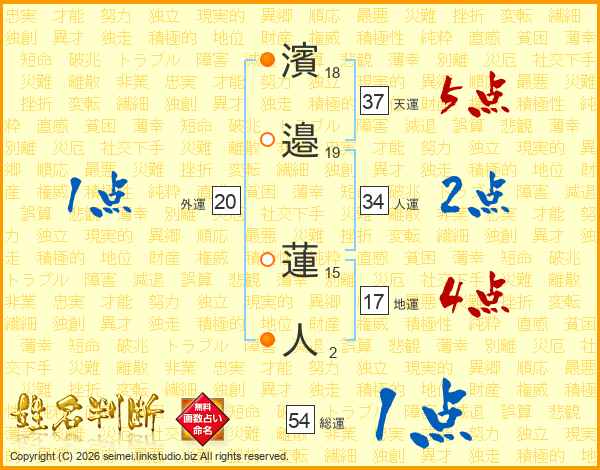 濱(18画)邉(19画) 蓮(15画)人(2画)