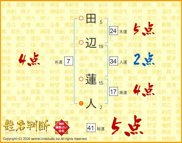 田辺蓮人さんの総運は41画の5点!