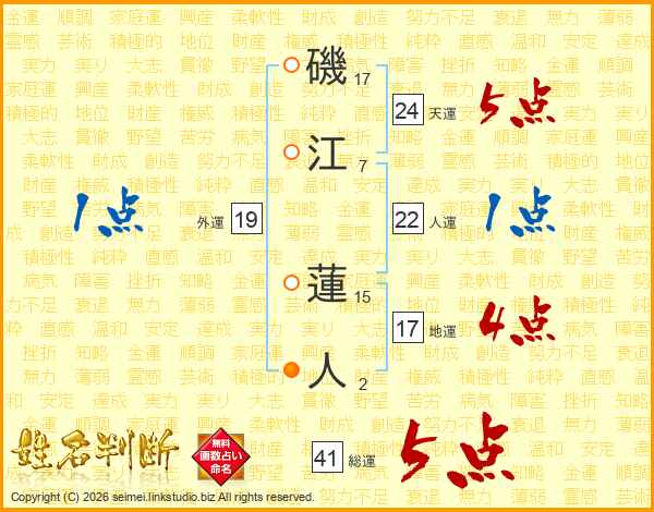 磯江蓮人さんの総運は41画の5点!