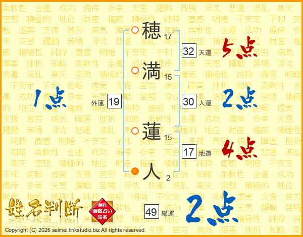 穂満蓮人さんの総運は49画の2点!