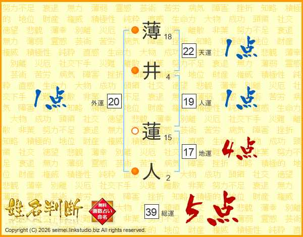 薄井蓮人さんの総運は39画の5点!