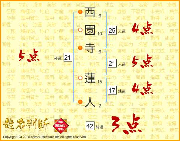 西園寺蓮人さんの人運は21画の5点!