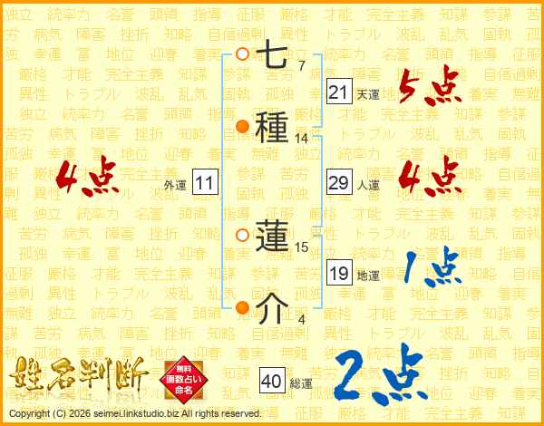 七種蓮介さんの総運は40画の2点!
