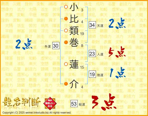小(3画)比(4画)類(19画)巻(8画) 蓮(15画)介(4画)