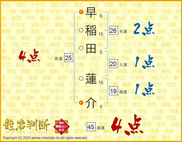 早稲田蓮介さんの総運は45画の4点!