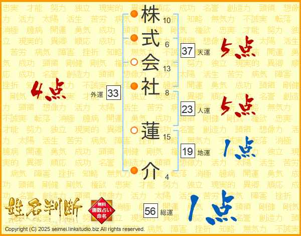 株(10画)式(6画)会(13画)社(8画) 蓮(15画)介(4画)
