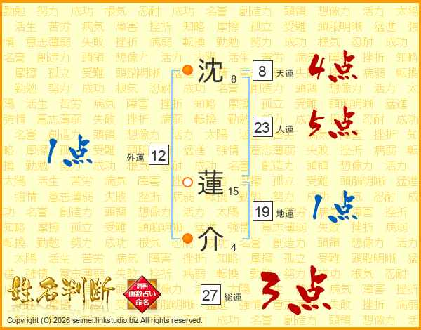 沈(8画) 蓮(15画)介(4画)