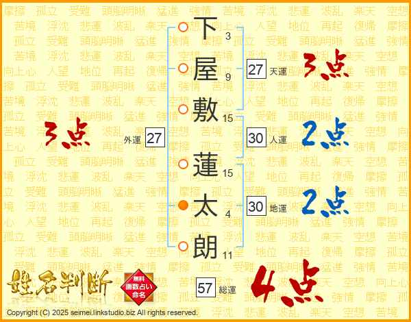 下屋敷蓮太朗さんの総運は57画の4点!