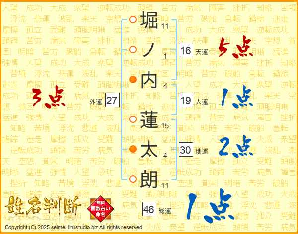 堀ノ内蓮太朗さんの総運は46画の1点!