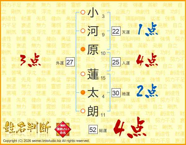 小河原蓮太朗さんの総運は52画の4点!