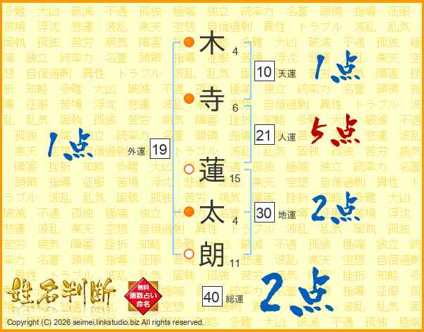 木寺蓮太朗さんの人運は21画の5点!