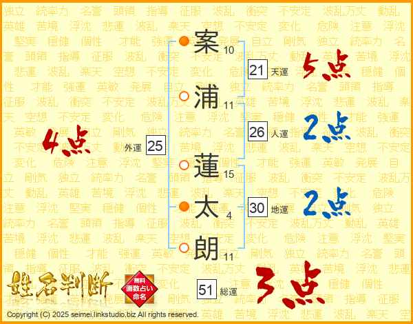 案浦蓮太朗さんの天運は21画の5点!