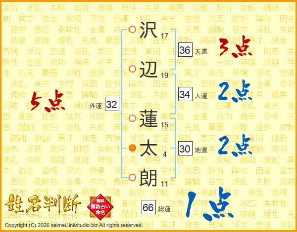 沢辺蓮太朗さんの総運は66画の1点!