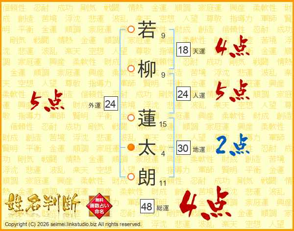 若柳蓮太朗さんの総運は48画の4点!