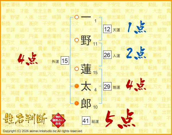 一野蓮太郎さんの人運は26画の2点!