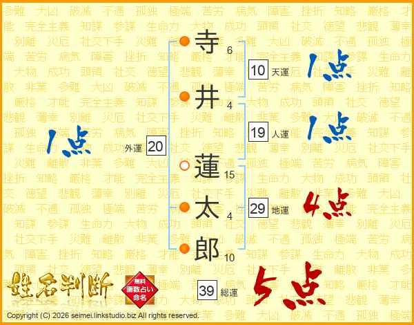 寺井蓮太郎さんの総運は39画の5点!
