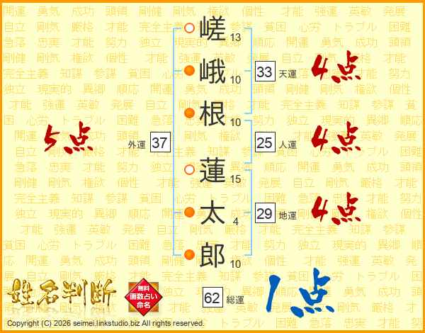 嵯峨根蓮太郎さんの外運は37画の5点!