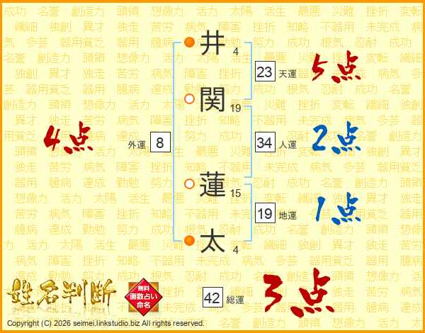 井関蓮太さんの天運は23画の5点!
