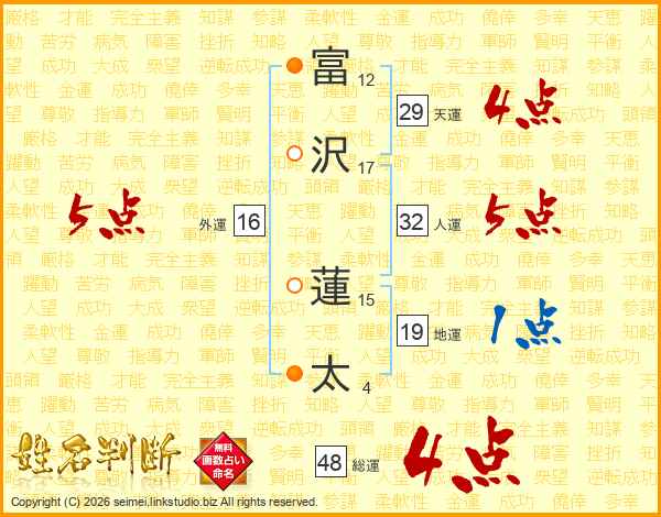富沢蓮太さんの総運は48画の4点!