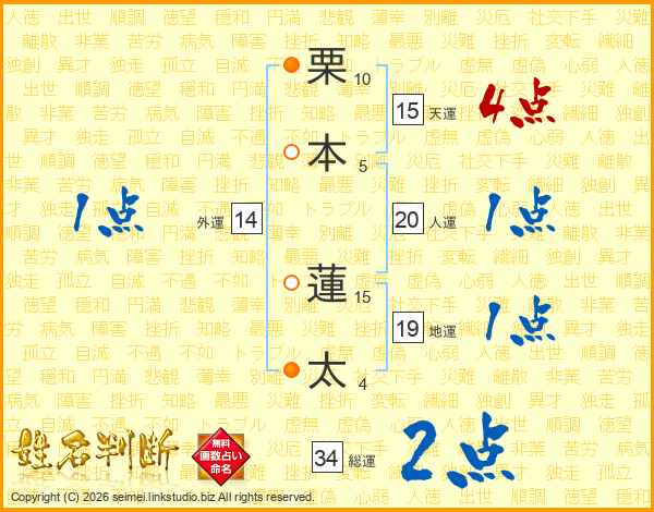栗本蓮太さんの総運は34画の2点!