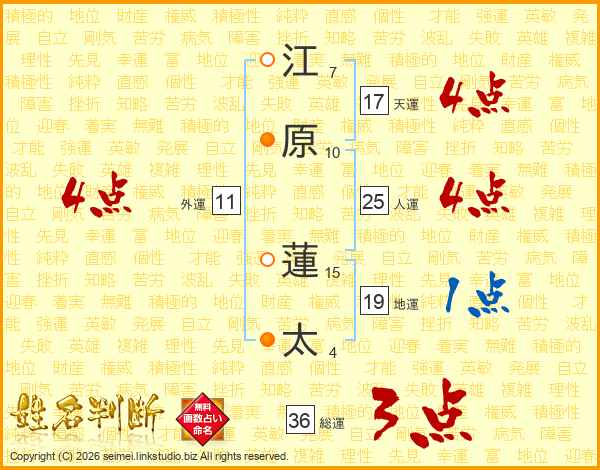 江原蓮太さんの人運は25画の4点!