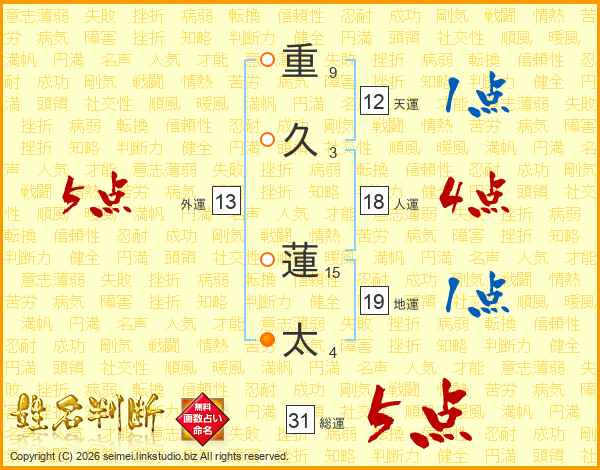重久蓮太さんの総運は31画の5点!