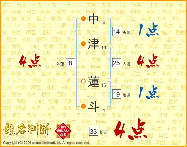 中津蓮斗さんの総運は33画の4点!