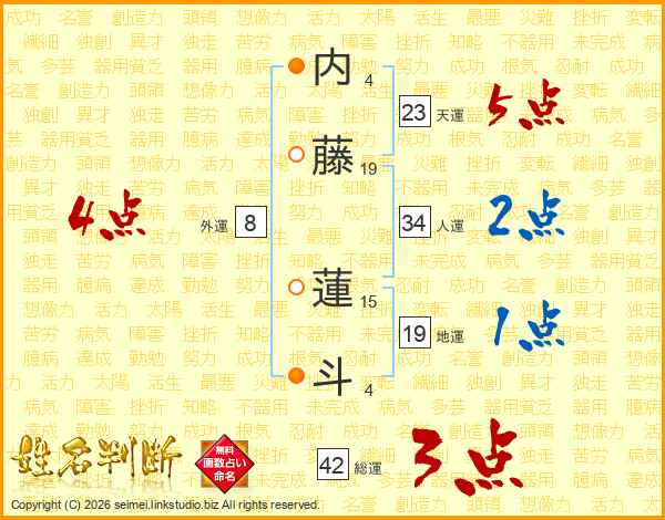 内藤蓮斗さんの総運は42画の3点!