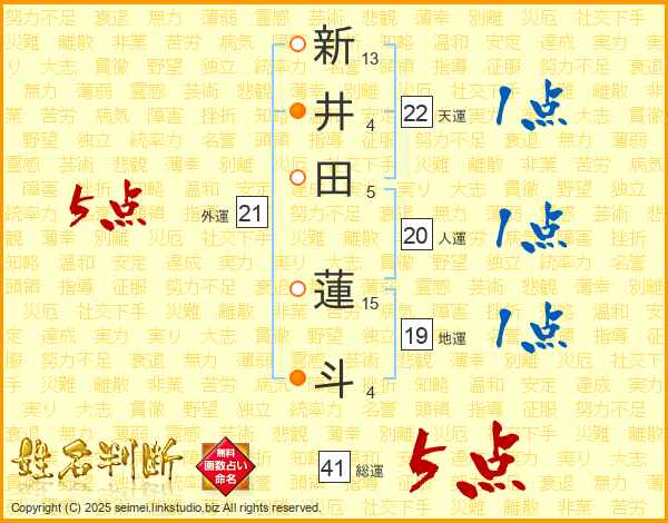新井田蓮斗さんの総運は41画の5点!