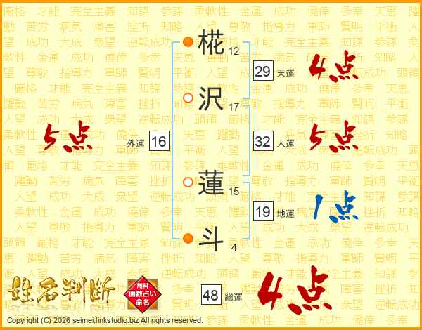 椛沢蓮斗さんの天運は29画の4点!