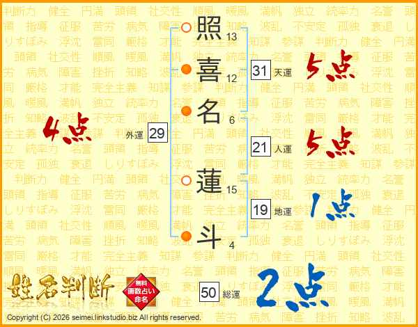 照喜名蓮斗さんの天運は31画の5点!