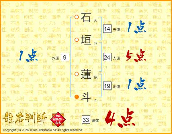 石垣蓮斗さんの総運は33画の4点!
