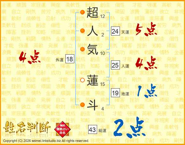 超人気蓮斗さんの総運は43画の2点!