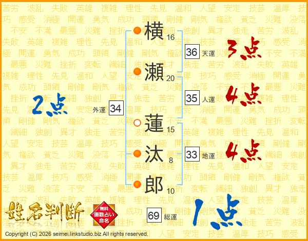 横瀬蓮汰郎さんの総運は69画の1点!