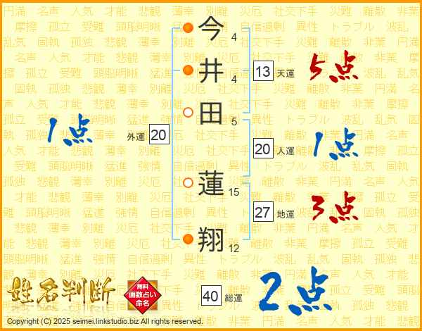 今(4画)井(4画)田(5画) 蓮(15画)翔(12画)