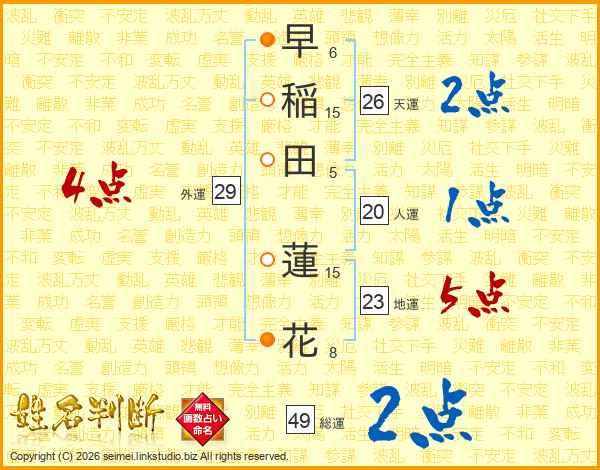 早稲田蓮花さんの総運は49画の2点!